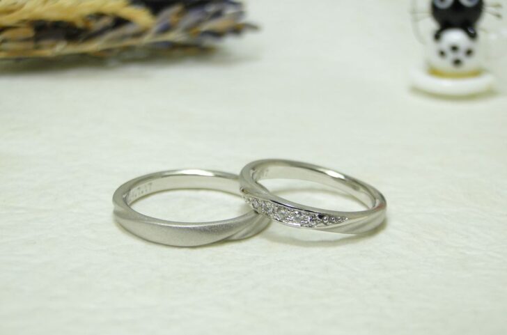 盛り上がった斜めラインとつや消しの手作り結婚指輪(京都府福知山市 足立様)